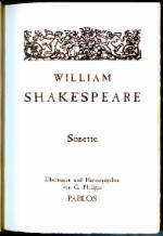 William Shakespeare, "Die Sonette"; 176 S. - 18,5x12,5, ein Holzschnitt, zwei sign. u. num. Linoldrucke, Br. m.U., 100 Exempl., übertr., illustr. u. hrsg. v. G.Philipps, 1996; 35,- ISBN 978-3-9803019-6-1
